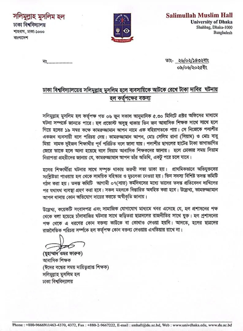 নিচে হল কর্তৃপক্ষের বক্তব্য সংযুক্ত করা হলো-
