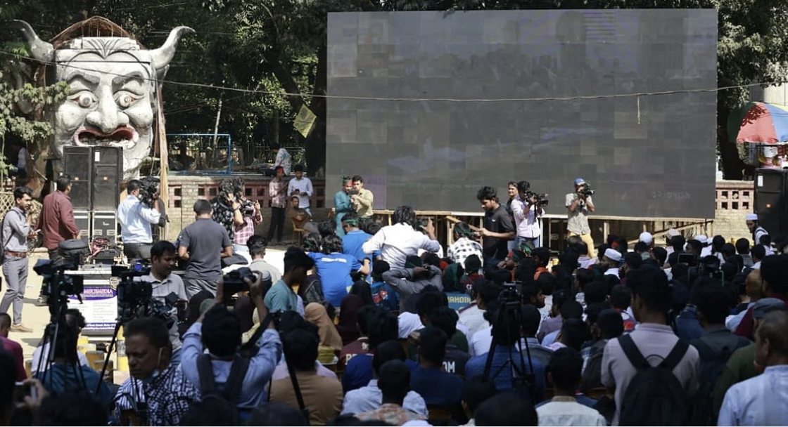 জুলাইয়ের গণ-অভ্যুত্থানের সময় সংঘটিত মানবতাবিরোধী অপরাধের অভিযোগে ক্ষমতাচ্যুত প্রধানমন্ত্রী শেখ হাসিনার বিরুদ্ধে করা মামলার রায় ঘোষণার কার্যক্রম সরাসরি সম্প্রচার করার জন্য ঢাকা বিশ্ববিদ্যালয়ের ছাত্র–শিক্ষক কেন্দ্রে (টিএসসি) বড় পর্দা বসানো হয়েছে।