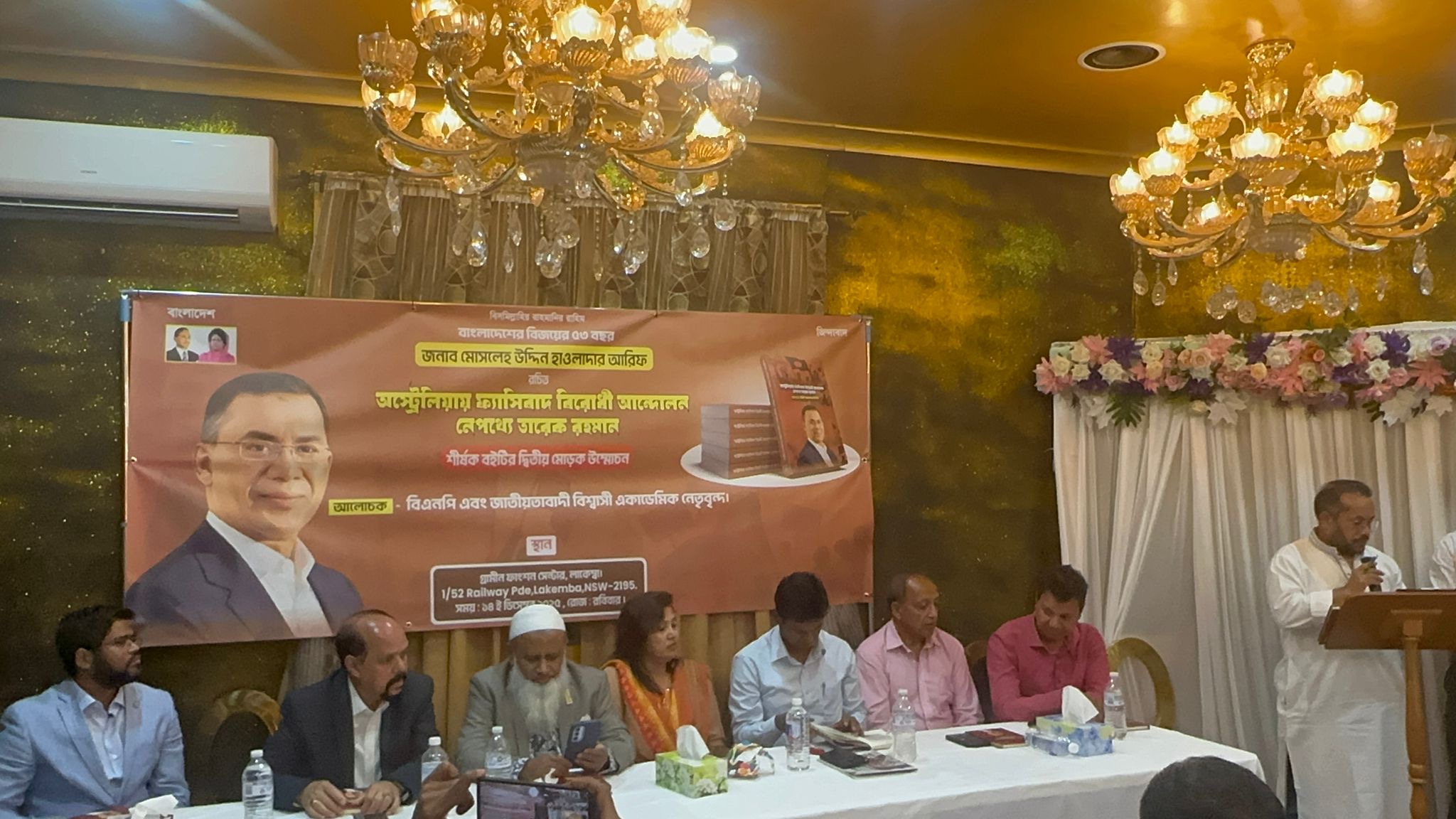 সিডনি অফিসঃ ফ্যাসিবাদ বিরোধী আন্দোলন নেপথ্যে তারেক রহমান,শীর্ষক বইয়ের দ্বিতীয় মোড়ক উম্মোচন। ১৪ই ডিসেম্বর ২০২৫ রবিবার সিডনির লাকেম্বাস্থ গ্রামীন ফাংশন সেন্টারে অনুষ্ঠিত হয়। বিএনপি অস্ট্রেলিয়ার প্রতিষ্ঠাতা এবং সুপ্রভাত সিডনির প্রধান সম্পাদক আব্দুল্লাহ ইউসুফ শামীমের সভাপতিত্বে এবং সাধারণ সম্পাদক মোহাম্মদ আবুল হাছানের পরিচালনায় আলোচক হিসাবে বক্তব্যে রাখেন বইয়ের লেখক বিএনপি অস্ট্রেলিয়ার সভাপতি মোসলেহ উদ্দিন হাওলাদার আরিফ, সাবেক সভাপতি মনিরুল হক জর্জ,শিক্ষাবিদ ড.হুমায়ের চৌধুরী রানা, বিশিষ্ট পরিবেশ বিজ্ঞানী ড. নার্গিস বানু,বিএনপির উপদেষ্টা রুহুল আহম্মেদ সওদাগর,নগর পরিকল্পনাবিদ ও গবেষক ডক্টর ফয়সাল কবির শুভ,জিয়া ফোরামের সাধারণ সম্পাদক জাকির আলম লেলিন, আইনজীবি উপল আমিন,বিএনপির সহসভাপতি এডভোকেট মোবারক হোসেন,ডাঃআব্দুল ওহাব বকুল,অধ্যাপক মাসুদ পারভেজ রানা,শোক প্রস্তাব করেন সাংগঠনিক সম্পাদক এএনএম মাসুম, আরো উপস্থিত ছিলেন সহসভাপতি বেলাল হোসেন ঢালী,মোহাম্মদ কামরুজ্জামান মোল্লা ঝিন্টু,যুগ্ম সাধারণ সম্পাদক খাইরুল কবির পিন্টু, এসএম খালেদ, নিউসাউথওয়েলসের সভাপতি মোহাম্মদ ইরফান খান,মোহাম্মদ কুদ্দুসুর রহমান,তাসলিমা কবির,সাংবাদিক মাসুম বিল্লাল,মোহাম্মদ খালিদ হোসাইন,এডভোকেট মুমিন আহম্মেদ,লিন্টাস পেরেরা,ইন্জিনিয়ার রায়হান হাসনাত,অসিত গোমেজ,মোহাম্মদ নাসির আহম্মেদ,মাহমুদুল হক দুলাল, সূধন যোসেফ ক্রুশ,মোহাম্মদ বাবুল খন্দকার,তোফাজ্জল হোসেন,রেহানা ইয়াসমিন,গোলাম রাব্বী শুভ্র, নূর মোহাম্মদ মাসুম, সাইফুল ইসলাম প্রমুখ। অনুষ্ঠানের শুরুতে কোরআন থেকে তেলোয়াত এবং দেশমাতা বেগম খালেদা জিয়ার সুস্থতা কামনায় এবং শহীদদের জন্য বিশেষ দোয়া মোনাজাত করা হয়। অনুষ্ঠানে সিডনিতে অবস্থিত বিভিন্ন বিশ্ববিদ্যালয়ের একাডেমিক নেতৃবৃন্দ আলোচনায় অংশগ্রহন করেন। বক্তারা প্রবাসে গত ১৭ বছরে আন্দোলনে তারেক রহমানের ভূমিকা নিয়ে লিখিত বইয়ের প্রসংশা করেন এবং ভবিষৎ এটি দলিল হিসাবে পরবর্তী প্রজন্ম মনে রাখবে যে প্রবাসে বসে অনলাইনের মাধ্যমে তথ্যপ্রযুক্তি ব্যবহার করে আন্দোলনে নেতৃত্ব দিয়ে ফ্যাসিস্টকে হঠানো সম্ভব।