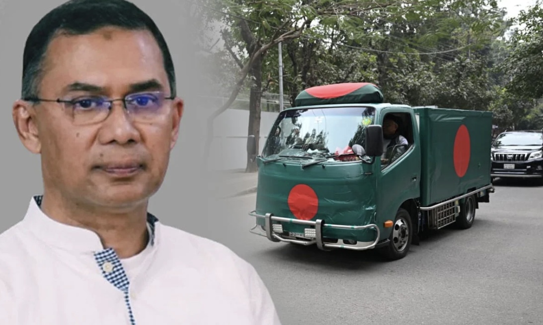 ভিডিওতে দেখা যায়, মায়ের মরদেহ গাড়ির পাশে একটি চেয়ারে বসে কুরআন তেলওয়াত ও দোয়া পড়ছেন ছেলে তারেক রহমান।