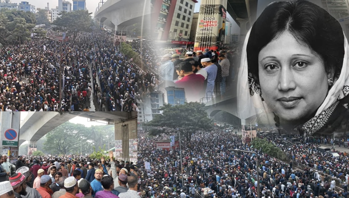 বুধবার দুপুর ৩টার পরপরই জাতীয় সংসদের দক্ষিণ প্লাজায় এ জানাজা অনুষ্ঠিত হয়। এতে ইমামতি করেন বায়তুল মোকাররমের খতিব। তার আগে শুধু মানিক মিয়া অ্যাভিনিউ নয়, আশ পাশের কয়েক কিলোমিটারজুড়ে মানুষ অবস্থান নেয় জানাজায় অংশ নিতে। তিল ধারণের জায়গা নেই।