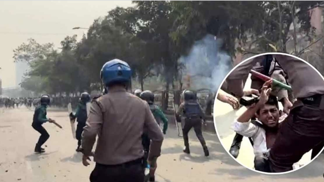 পুলিশ দুই রাউন্ড টিয়ারশেল নিক্ষেপ করার পর ঢাকা কলেজের শিক্ষার্থীরা ছত্রভঙ্গ হয়ে যায়।