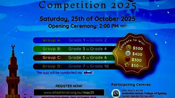 অস্ট্রেলিয়াজুড়ে এক হাজারেরও বেশি শিশু-কিশোর রেজিস্ট্রেশন সম্পন্ন করেছে ‘জাতীয় সীরাত কুইজ প্রতিযোগিতায়’ অংশগ্রহণের জন্য ‘রাসূল (সা.) আদর্শ জানবে অস্ট্রেলিয়ার নতুন প্রজন্ম’!